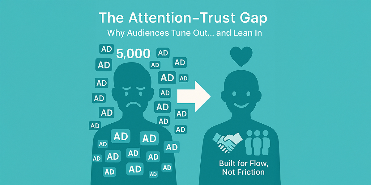 Today’s users see an average of 5,000 ads per day—and their trust in “targeted” messages is at an all-time low. Ads interrupt. Algorithms divide. Engagement flattens. But when brands earn attention—by playing fair, honoring privacy, and fostering community— they close the gap between visibility and trust, turning passive views into active belonging.