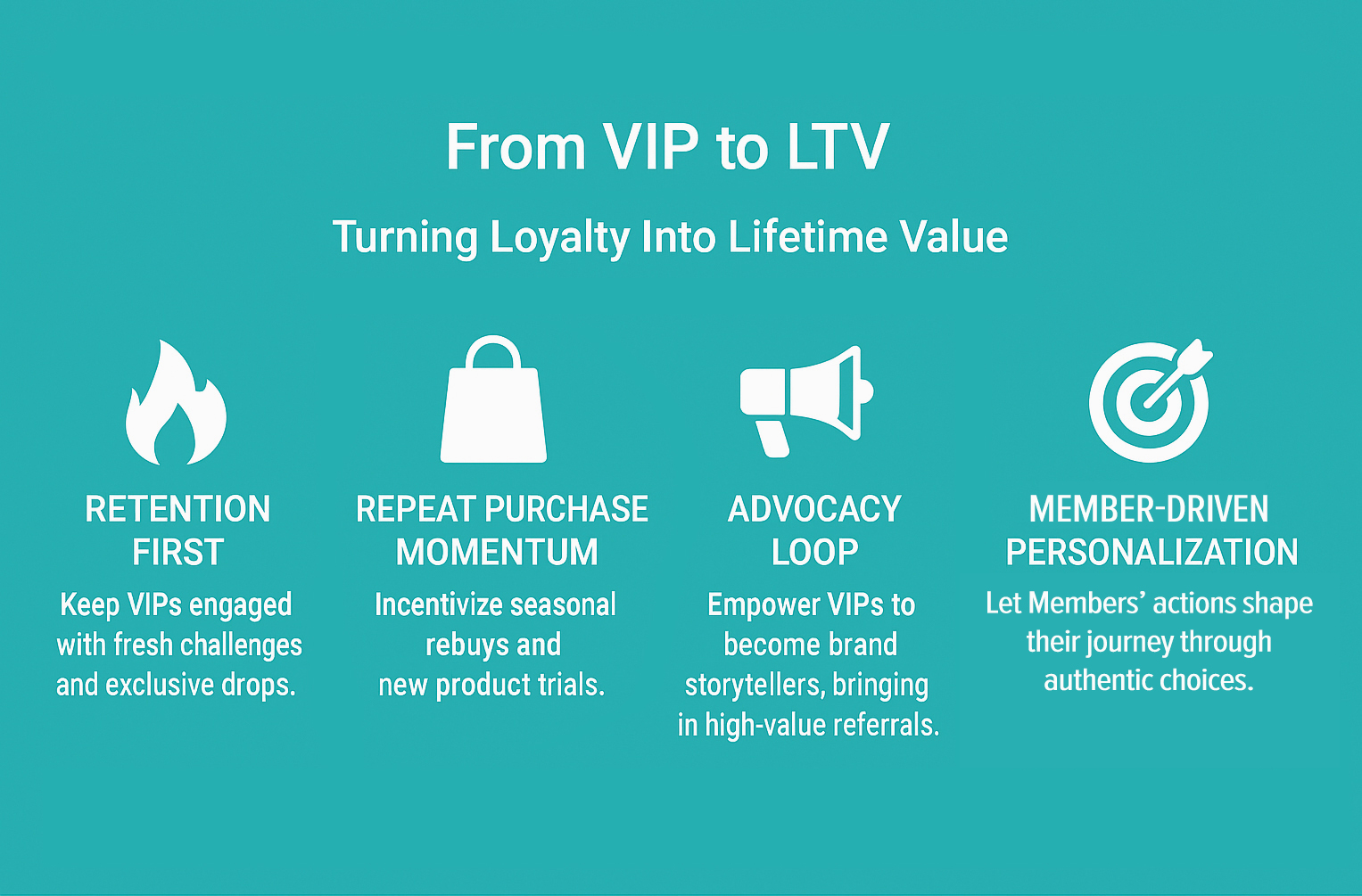 When a member reaches VIP status, they’ve already crossed the hardest bridge: trust. Now, every touchpoint becomes an opportunity to deepen that relationship — not just for the next sale, but for the next ten years. VIPs don’t just buy more — they stay longer, spend more often, and bring friends along. That’s the compound return of ValueFirst Engagement: a rising tide of LTV.